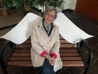 Im Anschluss an Renate Kierdorfs Eröffnung begaben wir uns geleitet von Uschi Stenz auf einen Spaziergang, bei dem sie uns an mehreren Stationen Fragen gestellt hat, die jeden zum Nachdenken einluden: „Wovor habe ich Angst? Was könnte passieren, wenn ich meine Ängste überwinde?“ Wir standen vor dem Feld der Unbedachten auf welchem eine Tür beeindruckte. Diese stammt aus der Anno- Kirche und symbolisiert den Übergang von der einen zur anderen Seite. Weiter ging es zu dem Engelsgrab, die Grabstätte für „Sternenkinder“, was viele besonders berührte. Diese Station widmete sich den eigenen Plänen. „Welchen sollte ich mehr Gewicht geben?“.